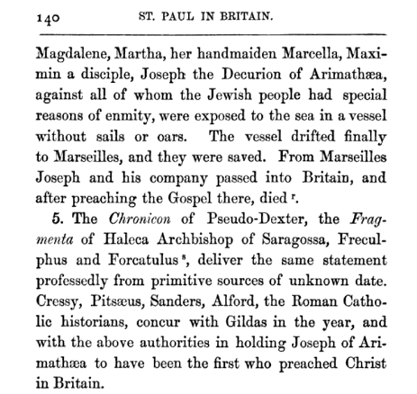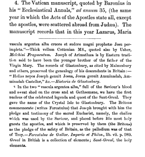 In chapter 4 it tells the story of Joseph of Arimathea and Mary Magdalene going to the south of France.
